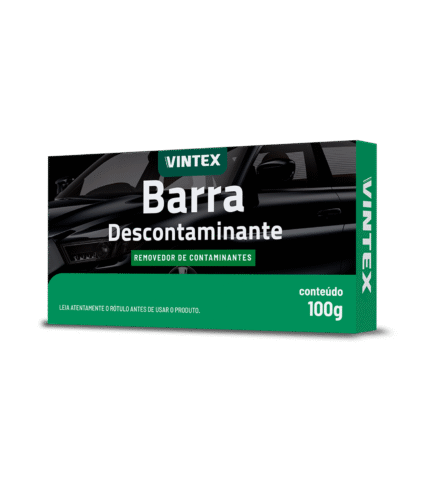 La Barra Descontaminante Vintex es un producto especialmente desarrollado para eliminar contaminantes de la pintura de vehículos, tales como rociado de pintura, savia de árboles, excrementos de pájaros recientes, impactos de insectos, contaminación industrial, polvo de frenos, pigmentos asfálticos y diversos residuos que dañan la pintura, dejándola áspera y sin brillo. . El producto se puede utilizar en pintura, vidrio, goma, cromo y faros.